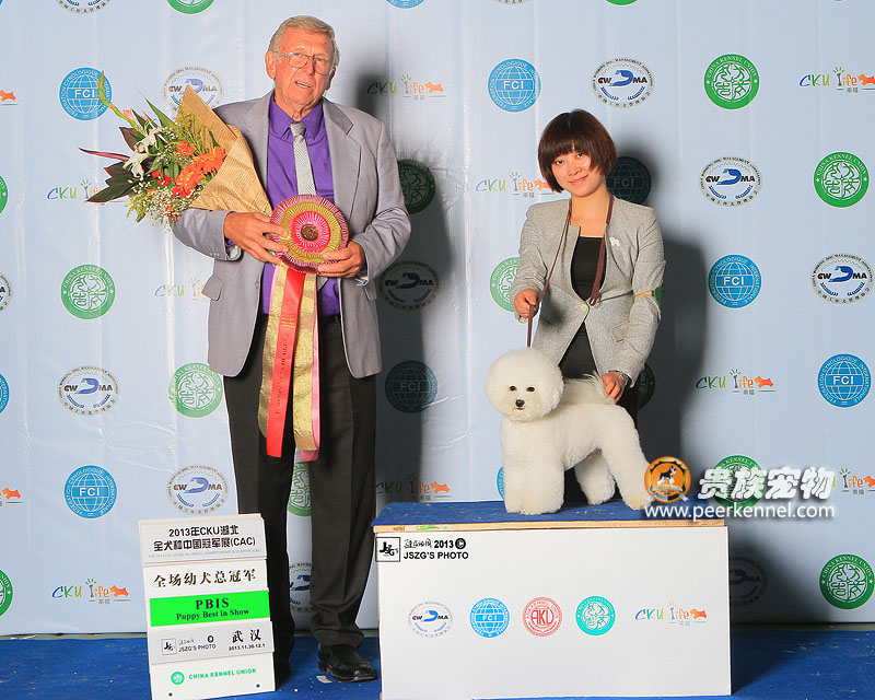Discovery不愧為我們貴族寵物新一代的小戰神.繼廊坊AKU亞洲全犬種國際冠軍展獲得全場后備總冠軍之后,給我們上演了一場犬展界的“帽子戲法”,在此次CKU舉辦的中國全犬種冠軍展上,連續三次獲得全場總冠軍BIS1x3的驕人成績,獲得了諸位裁判的青睞。真是激動人心的時刻!這證明范老師這段時間的辛苦付出是值得的,更加另人欣慰的是,初上賽場的Nat也榮獲Baby全場后備總冠軍的好成績,同時也恭喜我們可愛的Rainblow為它的新主人高小姐贏得了一份榮譽,真是一群讓人贊嘆的孩子們~~